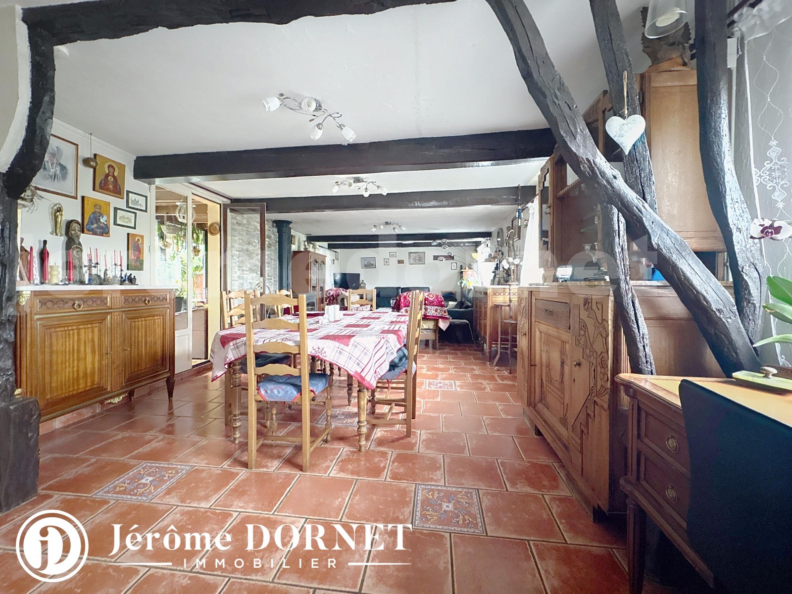 Offrant entrée sous porche, donnant accès à la maison comprenant une cuisine aménagée, un séjour double avec poêle à bois, sdb, wc, véranda donnant sur la cour extérieur. A l’étage un espace bureau, 5 chambres, sde, wc. Grenier