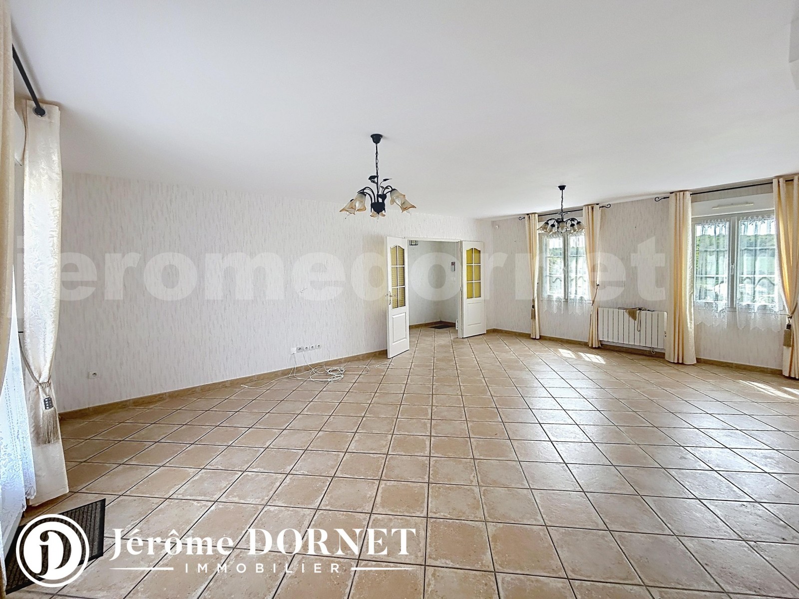 Offrant entrée, cuisine aménagée et équipée, vaste séjour double, trois chambres, salle d'eau, wc.